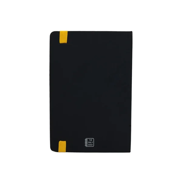 Cuaderno de tapa dura con 80 hojas rayadas A5 de 80gr Hecho en PVC con cierre elástico, cinta marcadora y borde de página en color. Encuadernación cosida. Medidas: 15 x 21 cm. The Daily Book.