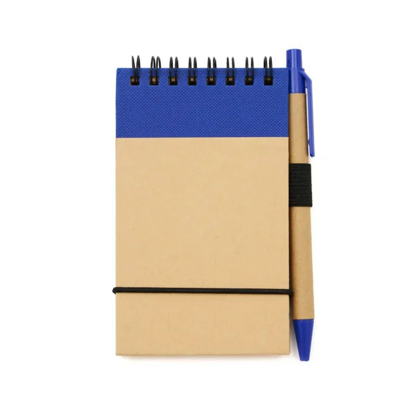 Anotador vertical con hojas rayadas y bolígrafo de tinta azul. Confeccionado con papel de 70 gramos, incluye 50 hojas rayadas.