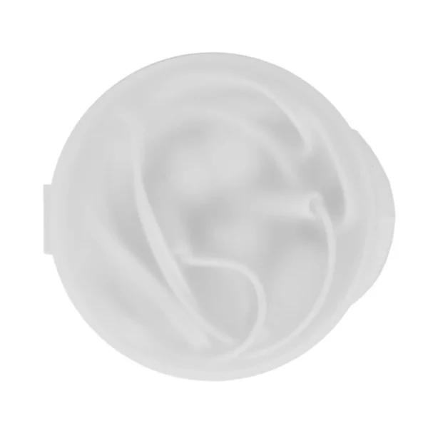 Auriculares con cable en estuche circular. Colores: Blanco y negro. Medidas: 6 x 5,3 x 2 cm.