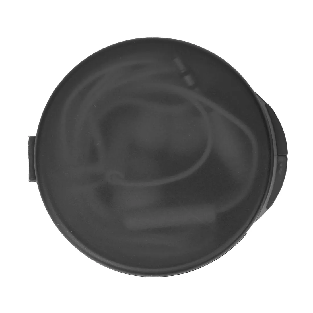 Auriculares con cable en estuche circular. Colores: Blanco y negro. Medidas: 6 x 5,3 x 2 cm.