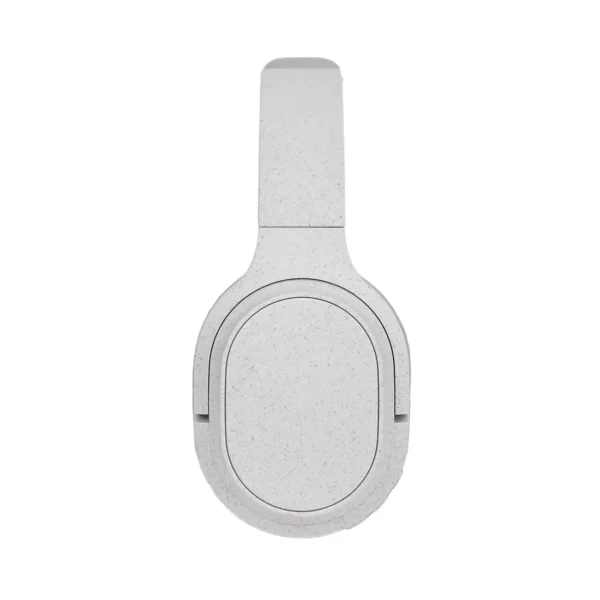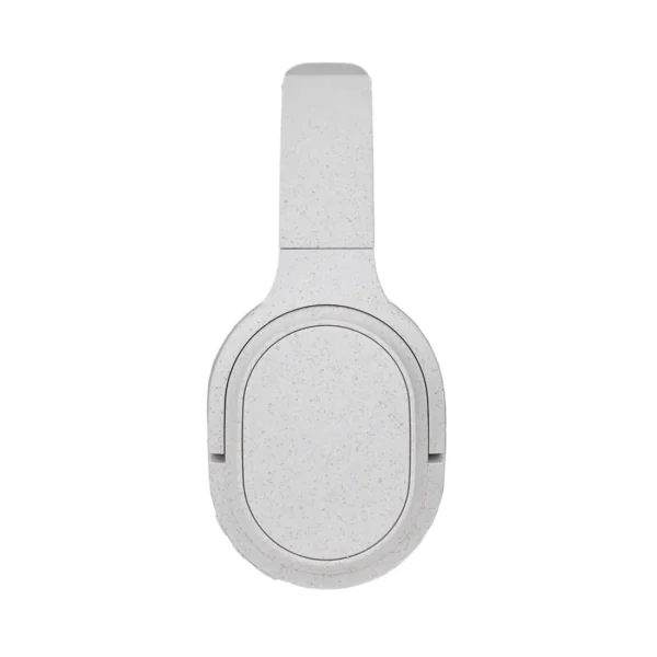 Auriculares inalámbricos estilo diadema, con micrófono incorporado. Realizado en ABS y Wheat Straw, pasta de tallo de trigo, un material sustentable que reduce el consumo de plásticos vírgenes. Cuenta con cobertura bluetooth en una distancia de 10 metros y conector para cable jack de 3.5mm, y ranura para tarjetas de memoria. Incluye cable micro USB de carga. Incluye botones de comando para encender, apagar, retroceder y avanzar. Su capacidad de carga es de 450mAh. Potencia: 15mWx2. Sensibilidad: 85dB. Impedancia: 32 Ω. Bluetooth: 5.1.