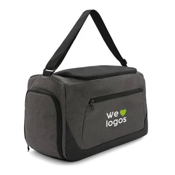 Bolso realizado en polyester 300D, incluye un compartimento impermeable apto para objetos húmedos y porta botellas en la parte trasera. Cuenta con cuatro compartimientos y correa regulable. Ideal para el deporte o viajes. Dimensiones: 48 x 28 x 23 cm. Capacidad: 30L.