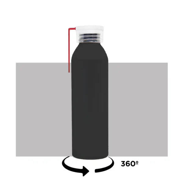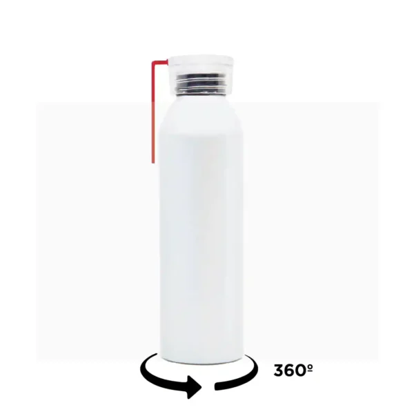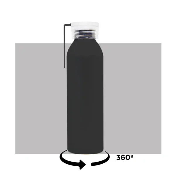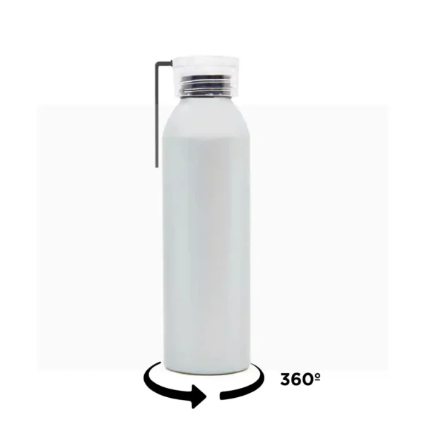 Sport Bottle realizada en aluminio, incluye banda colgante de silicona en colores. Medidas: 23 cm x Diámetro 6,5 cm. Capacidad: 600 ml.
