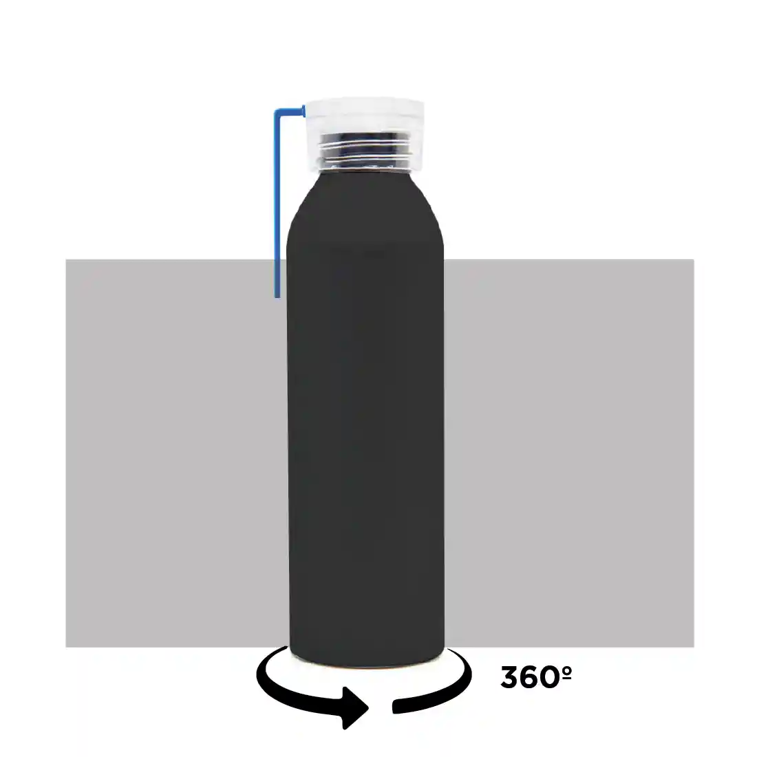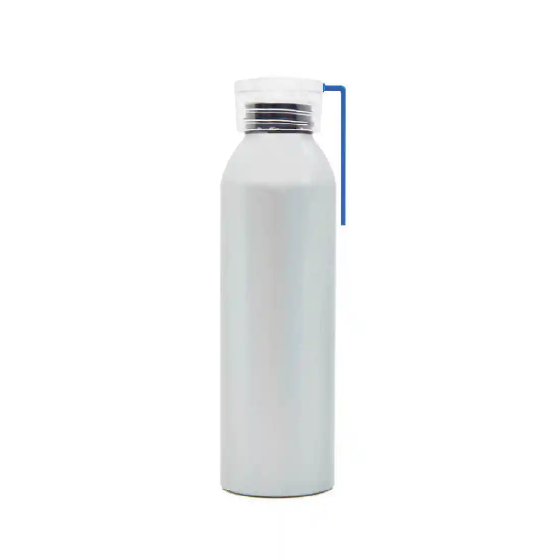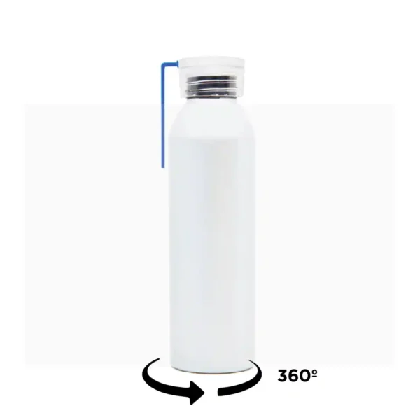 Sport Bottle realizada en aluminio, incluye banda colgante de silicona en colores. Medidas: 23 cm x Diámetro 6,5 cm. Capacidad: 600 ml.