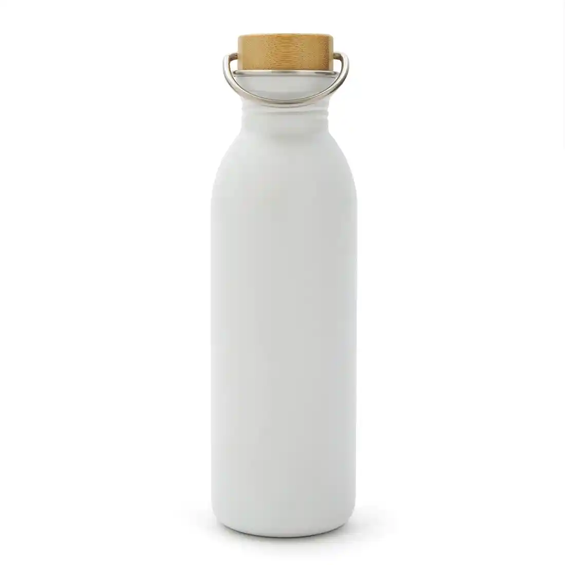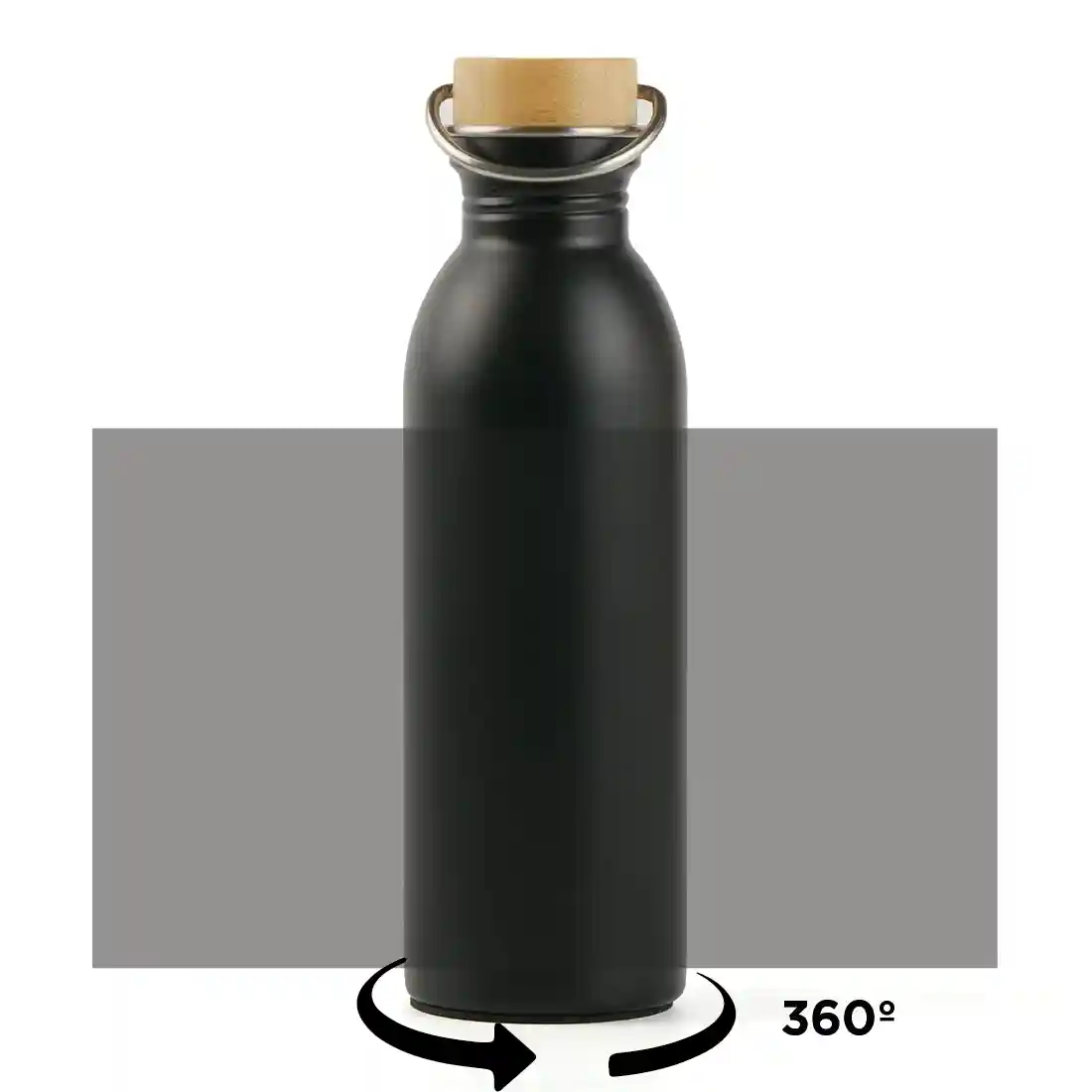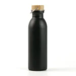 Botella de acero 304 con tapa de bamboo. Cuenta con una manija de agarre sobre su tapa para fácil transporte y tiene una capacidad de 600ml. Ideal para actividades deportivas.