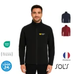 Chaqueta de softshell 280g 96% poliéster 4% elastáno con tela exterior impermeable e interior de polar. Cuenta con 2 bolsillos laterales con cierre.