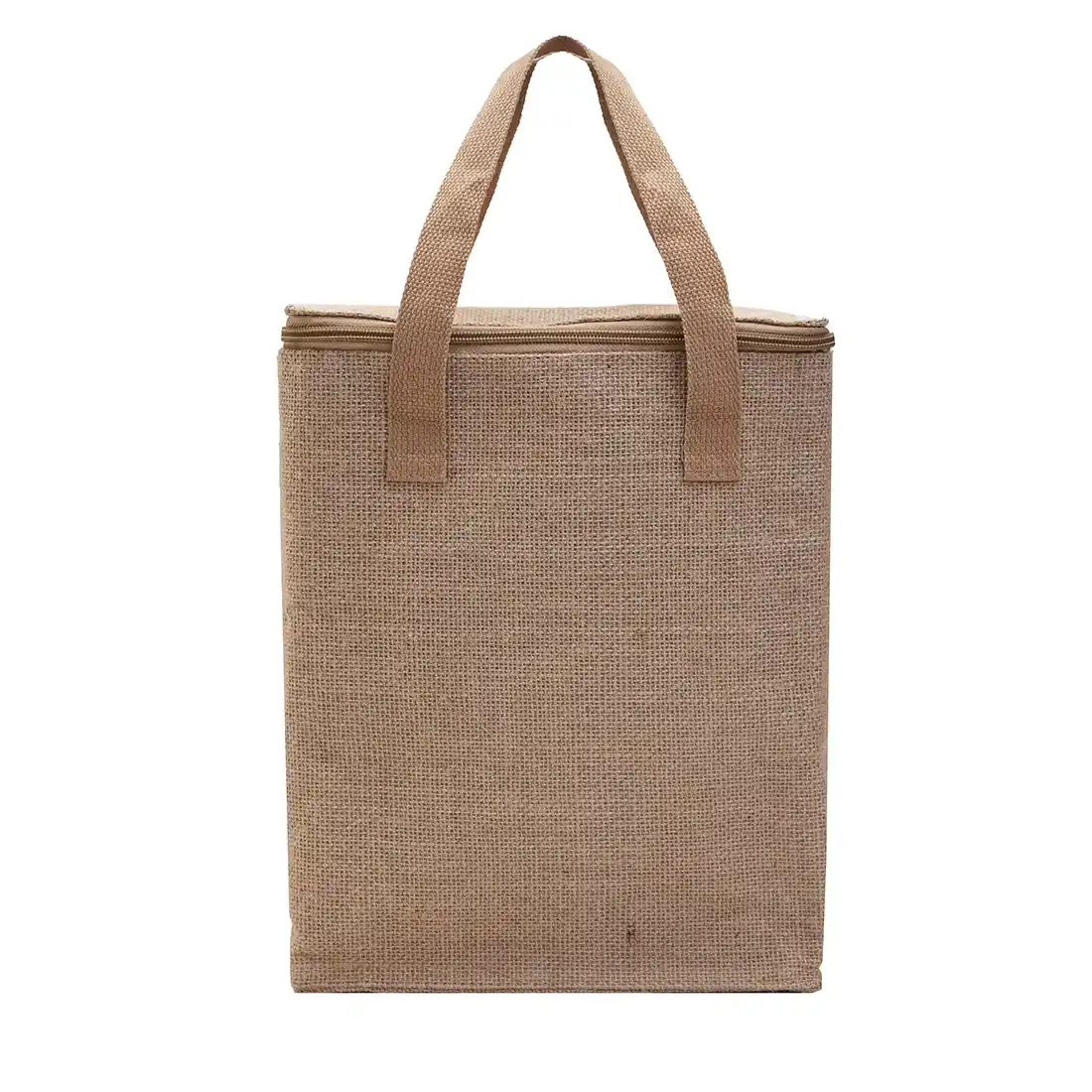 Cooler con exterior de Yute e interior térmico confeccionado en PEVA. Debido a la naturaleza rústica del material, el producto puede presentar imperfecciones. Medidas: 30 x 24 x 13 cm. Capacidad: 9L Reuseme.