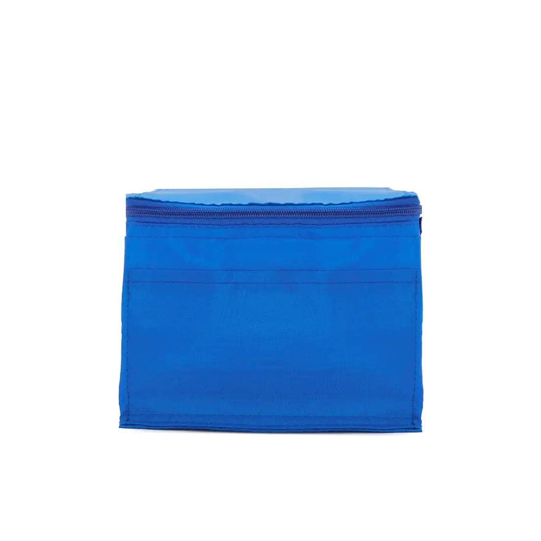 Realizado en su exterior en polyester 210T. Interior en aluminio y PE Foam 2mm. Tiras para hombro. Compartimiento principal superior. Bolsillo frontal. Medidas: 20,3 x 15,2 x 15,2 cm. Capacidad 5 Lt.