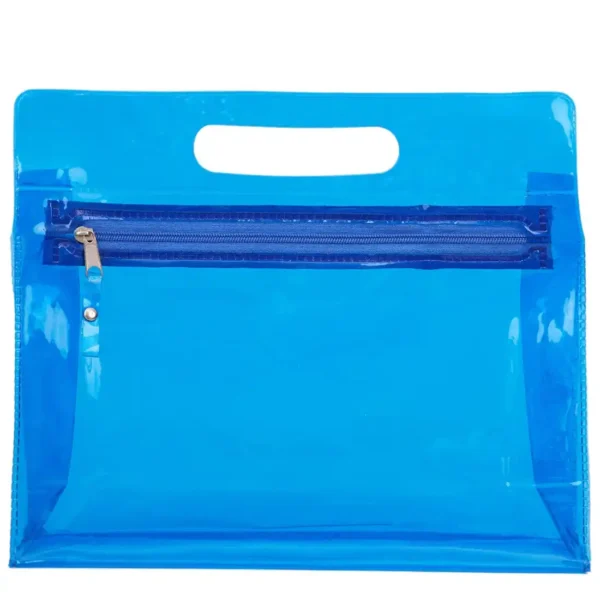 Necessaire de PVC transparente con cierre. Cuenta con fuelle, permitiendo mayor capacidad de guardado. Medidas: 25×20,5x7cm.