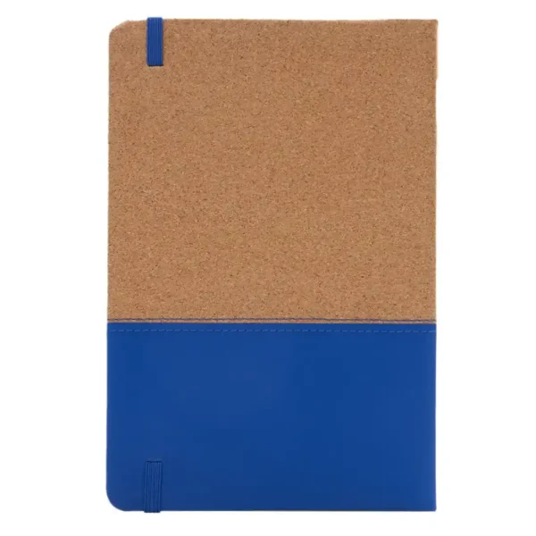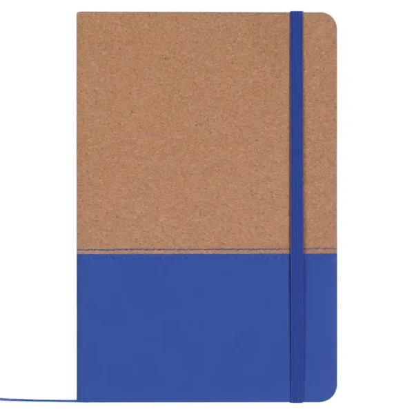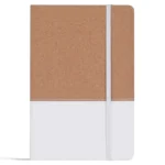 Cuaderno con tapa de corcho y PU. Cinta marca página y elástico de cierre. 80 hojas rayadas. Medidas: 14,5 x 21 cm. ReUseMe.