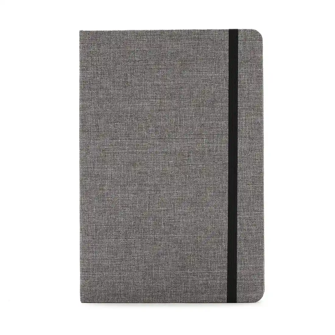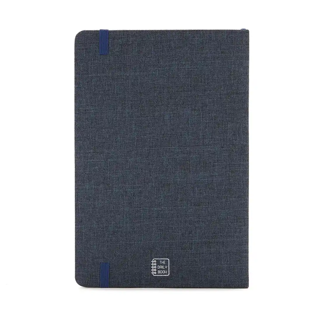 Cuaderno con tapa de tela 300D en dos tonos. Hojas internas de 70 gramos, con 80 hojas en formato rayado. Dimensiones: 14 x 21 x 1,4 cm. Daily Book