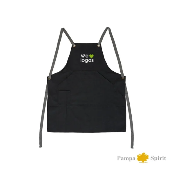 El delantal de Pampa Spirit está confeccionado en tela 50% polyester, 50% algodón. Incluye un bolsillo grande principal y un bolsillo pequeño. Cuenta con dos tiras regulables para atar en la cintura. Dimensiones: 80 cm de alto y 70 cm de ancho. Pampa Spirit.
