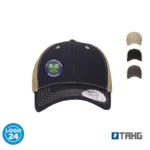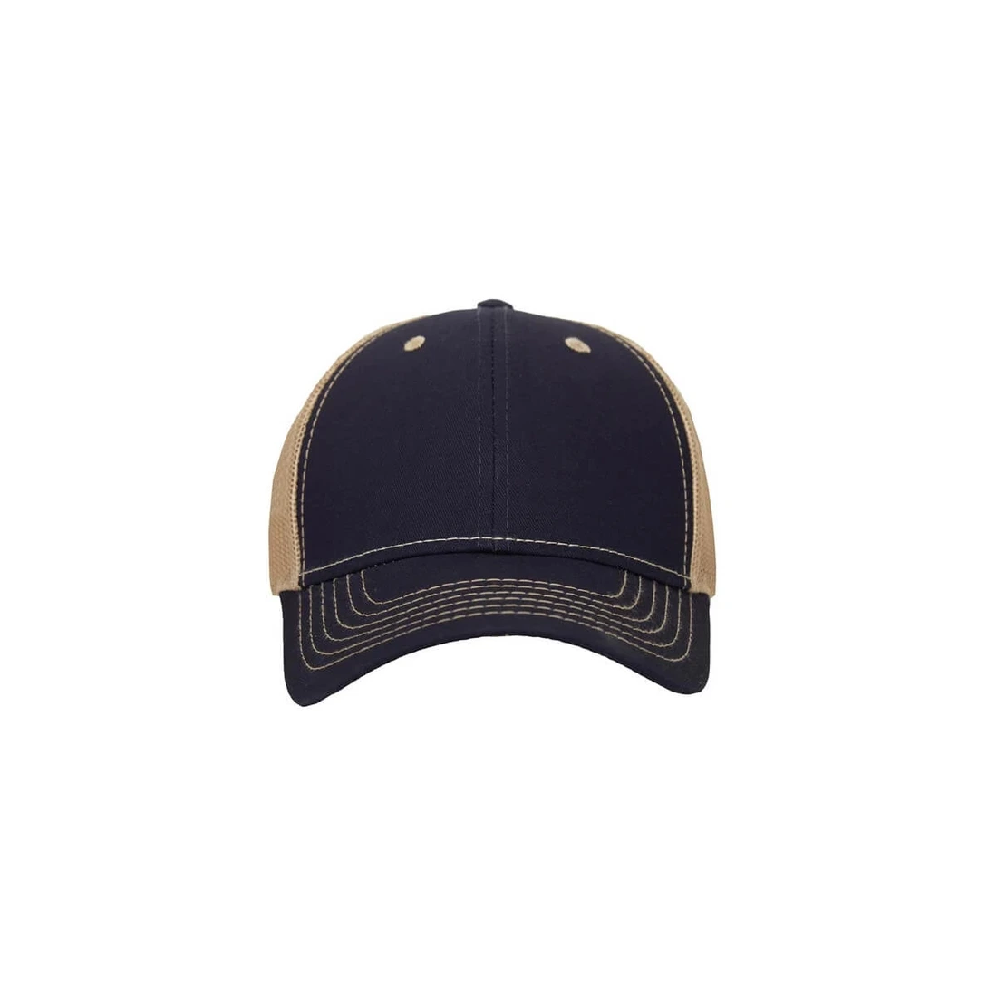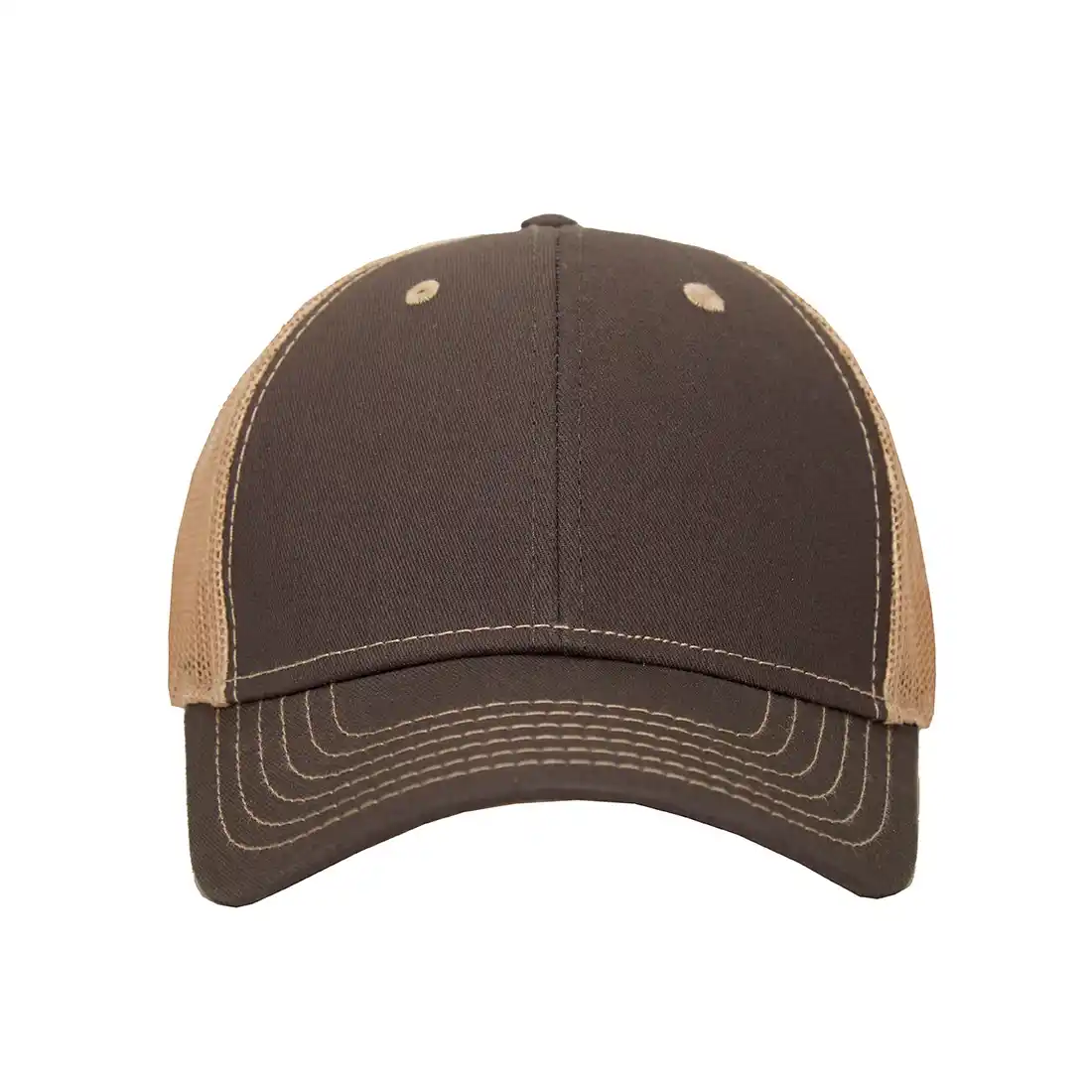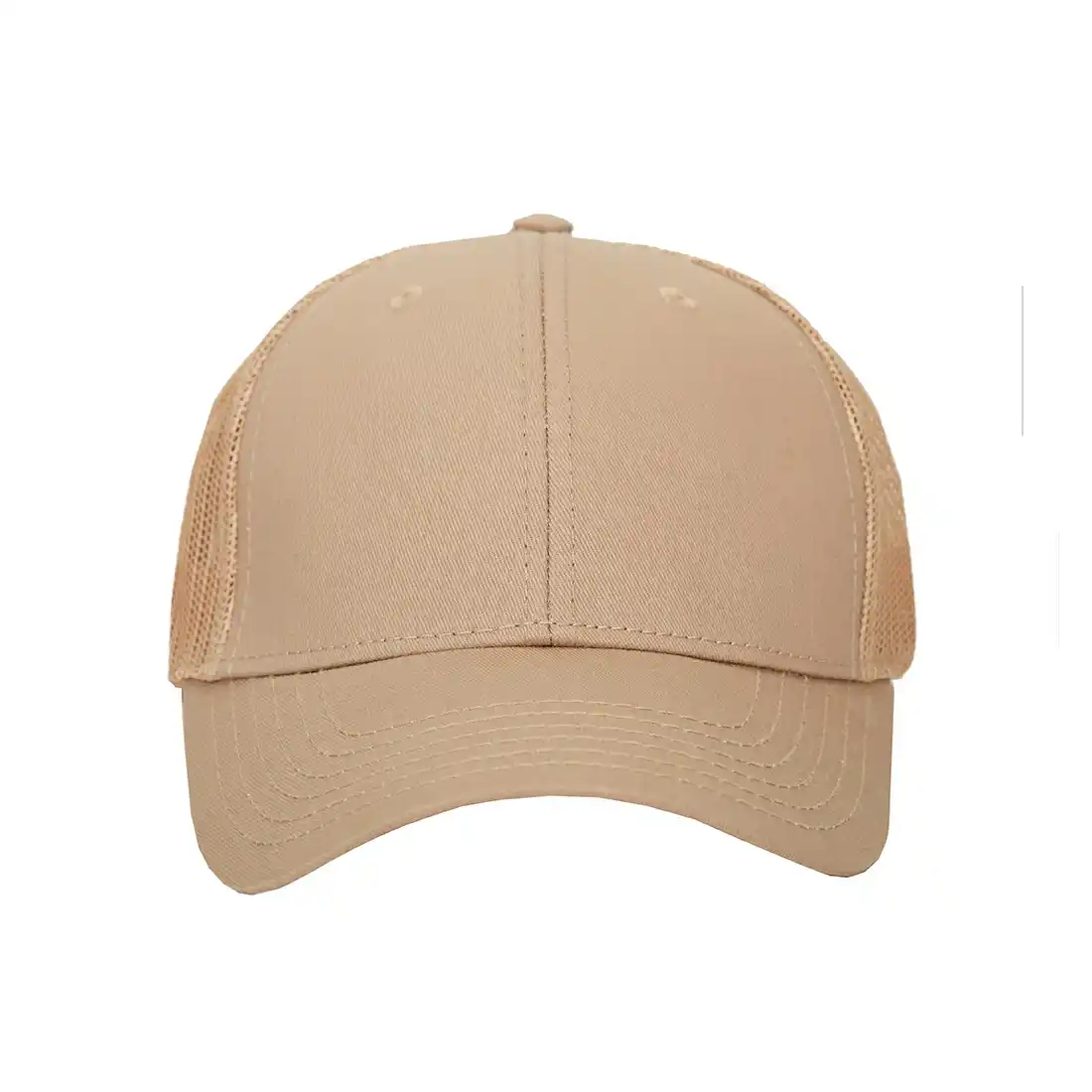 Jockey de 6 gajos con visera. El dorso del del gorro cuenta con diseño de tela de red de color kaki y ajuste con broche. Posee un sticker metalizado en la visera.