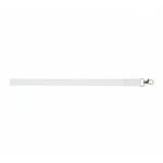 Cinta porta credencial blanca de poliéster con gancho metálico, fabricada en poliéster y aleación de zinc. Cuenta con doble mosquetón metálico resistente que asegura credenciales e identificaciones de manera práctica y segura. Es ideal para empresas, instituciones educativas, ferias, congresos y todo tipo de eventos donde se requiera portar identificación visible.
