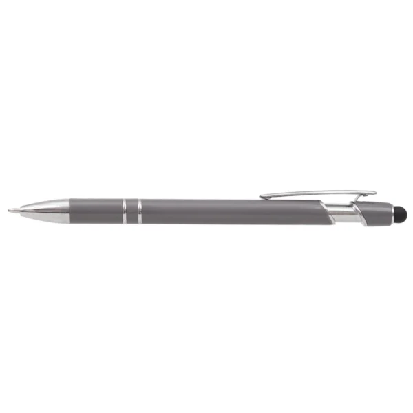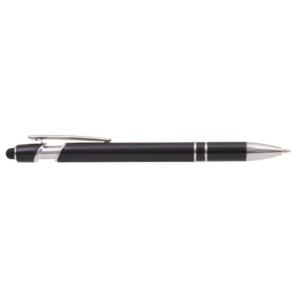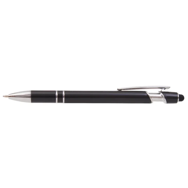 Lápiz de cuerpo sólido, realizado en ABS. Tinta de color azul. Apertura con con clip retractil. Posee touch para pantallas táctiles.