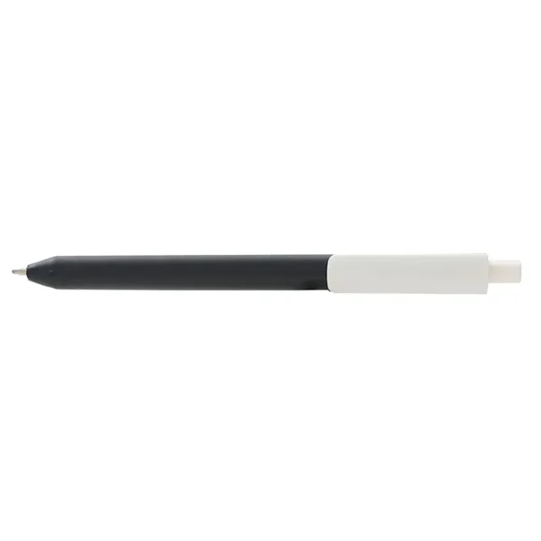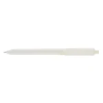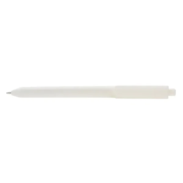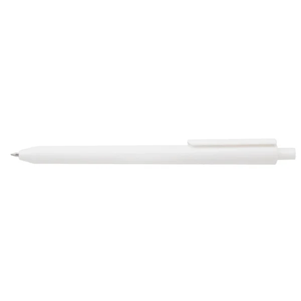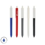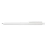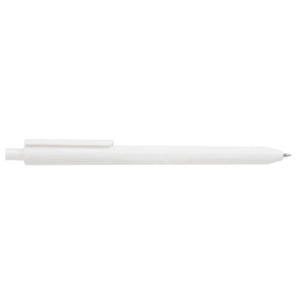 Lápiz confeccionado en ABS, con clip en color blanco. Apertura con pulsador retractil. Tinta azul.