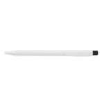 Lápiz confeccionado en ABS, de cuerpo de color blanco y clip en color. Apertura con pulsador. Tinta Azul
