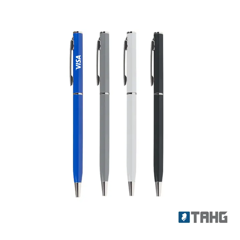 Lápiz de metal. Diseño elegante. Con clip. Apertura medio giro. Tinta azul