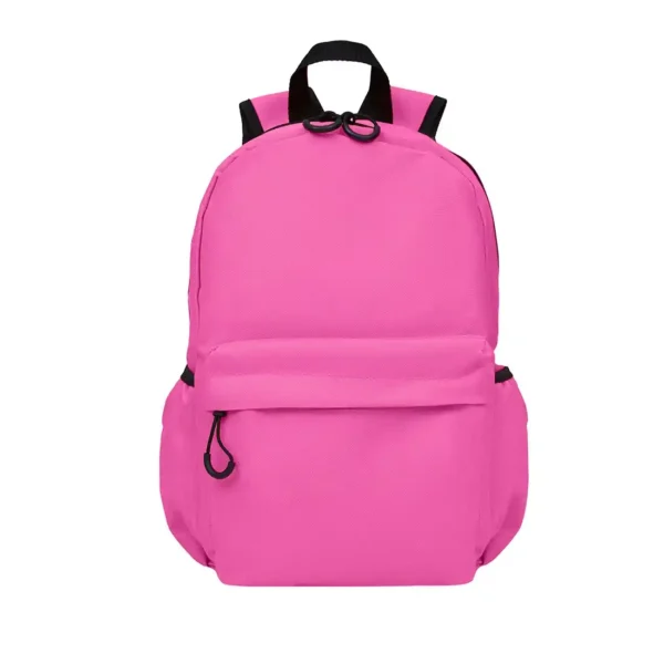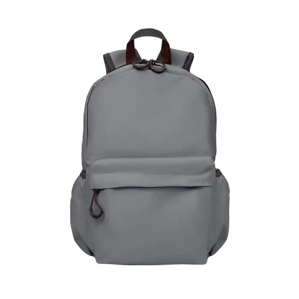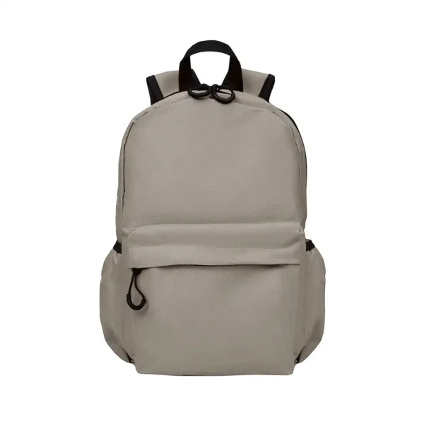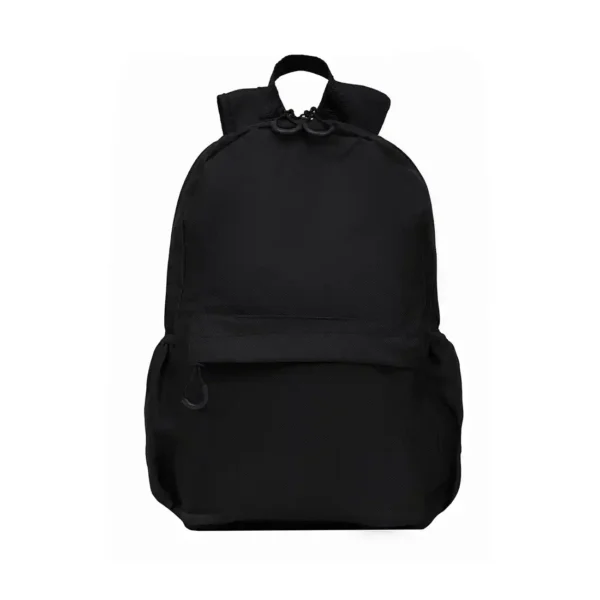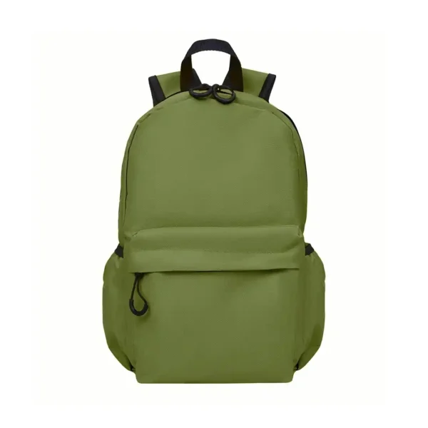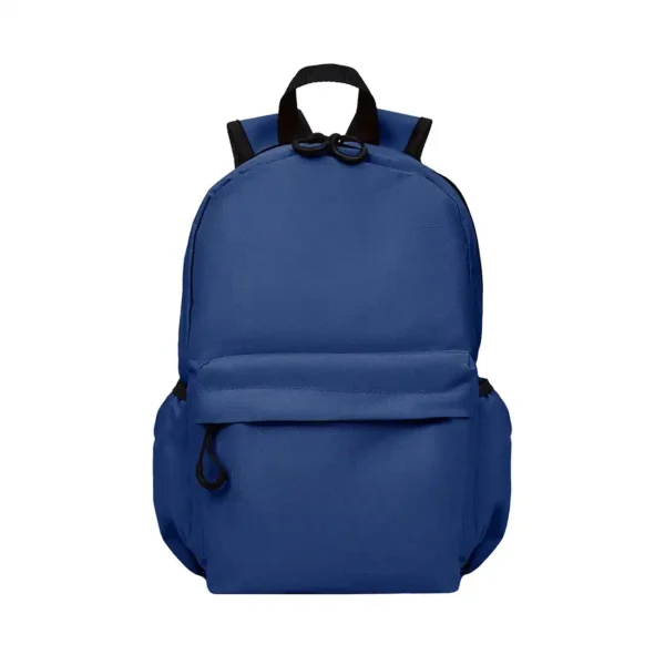 Mochila confeccionada en Polyester, con 2 bolsillos frontales con cierre y 2 bolsillos laterales elásticos porta botellas. Cuenta con correas regulables. Medidas: 42 cm alto | 27cm ancho | 12cm profundidad. Capacidad 13.5 lts.
