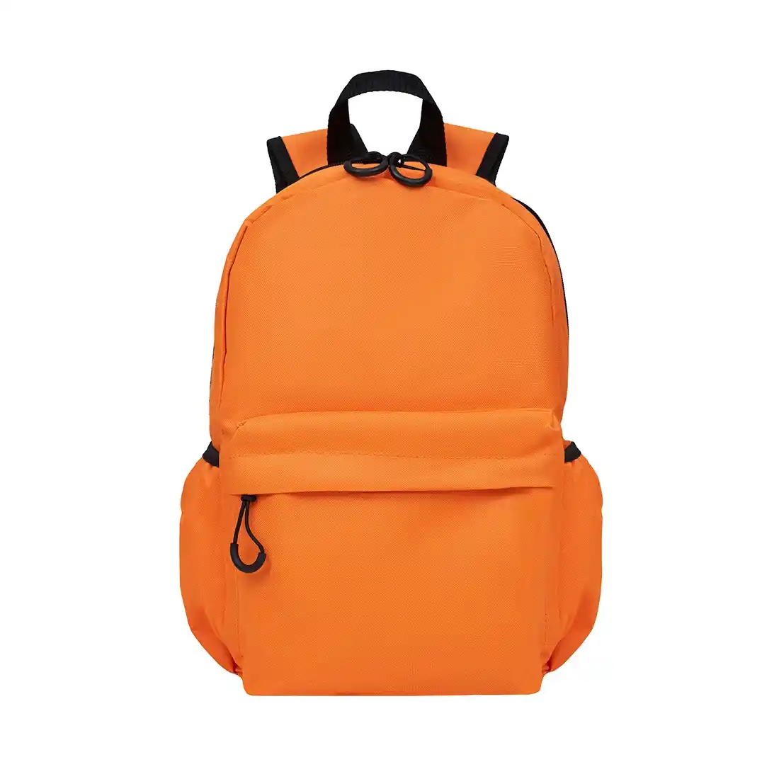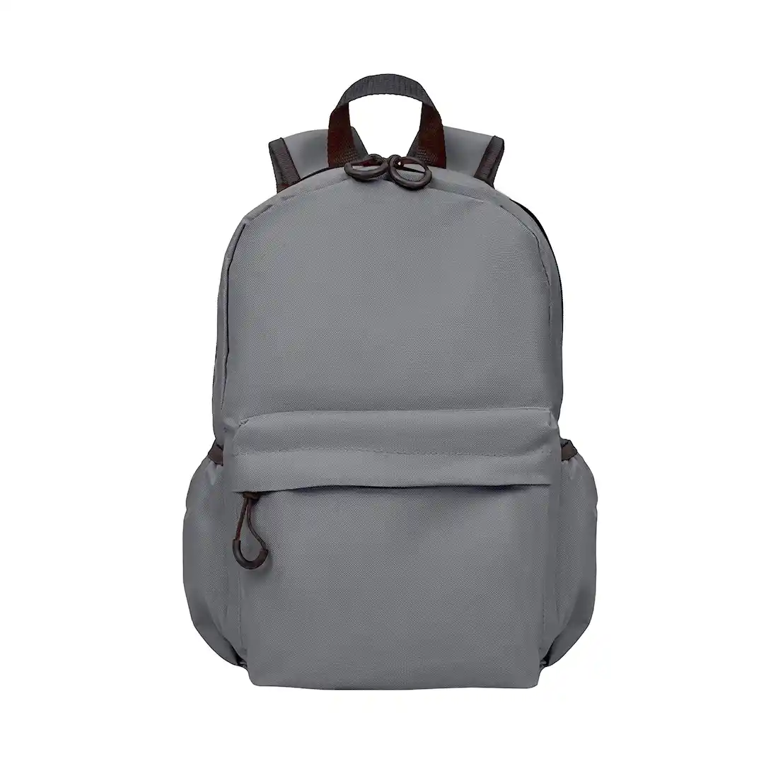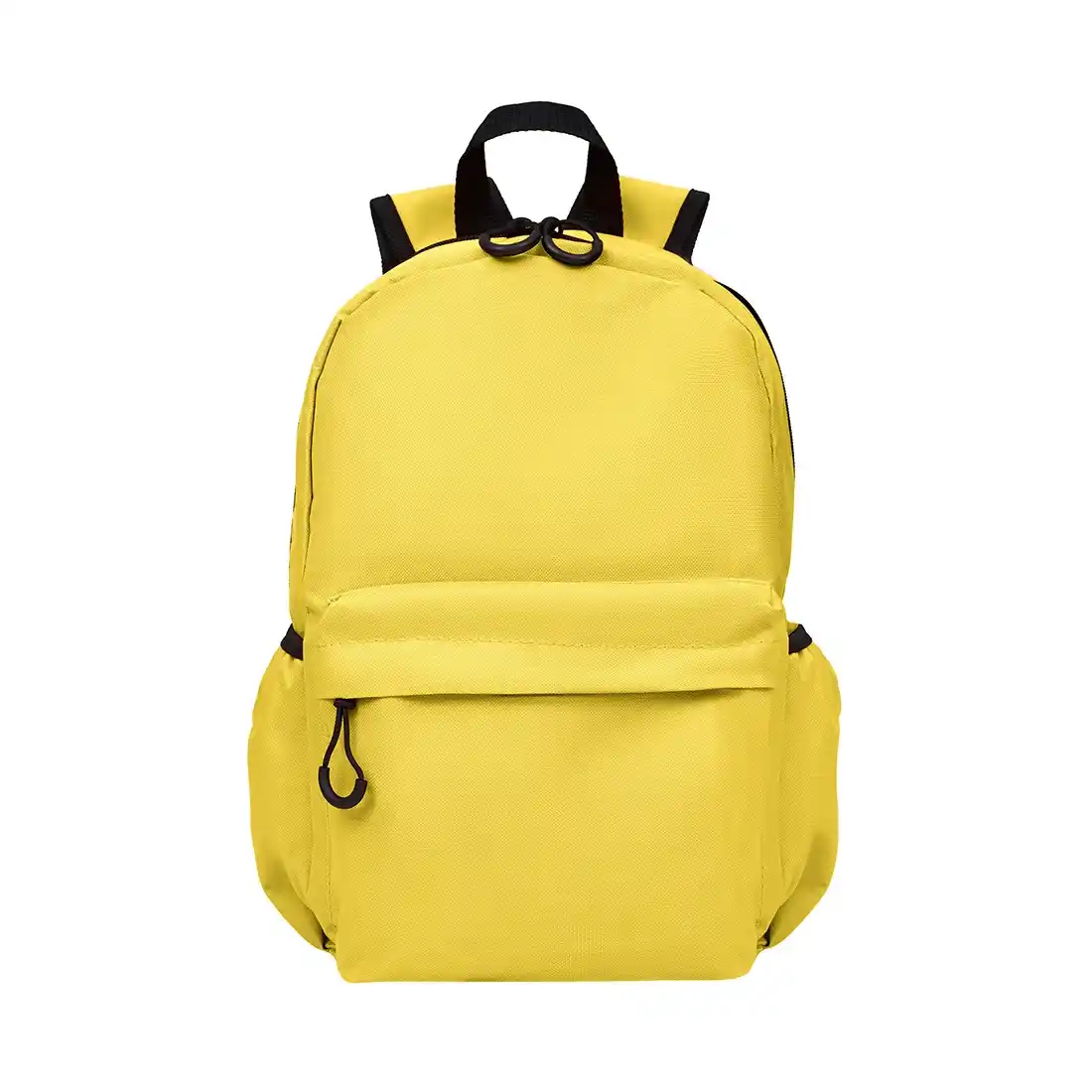 Mochila confeccionada en Polyester, con 2 bolsillos frontales con cierre y 2 bolsillos laterales elásticos porta botellas. Cuenta con correas regulables. Medidas: 42 cm alto | 27cm ancho | 12cm profundidad. Capacidad 13.5 lts.