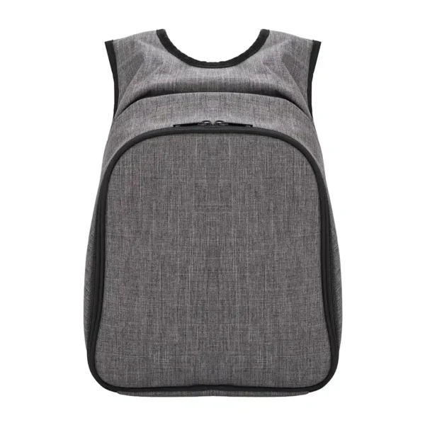 Mochila funcional y moderna para transportar alimentos y bebidas. Fabricada en polycanvas con revestimiento interior térmico de PEVA. Cuenta con compartimento principal amplio para alimentos, uno secundario para utensilios o accesorios y correas acolchadas ajustables. Incluye un completo set de picnic con platos, vasos, cubiertos y sacacorcho, todo en el mismo tono. Ideal para picnics, salidas al aire libre, días de campo o viajes, manteniendo todo organizado y fresco.