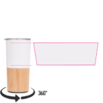 Mug térmico realizado en acero inoxidable, con detalles en bamboo, Polipropileno y ABS. Tapa cristal clear con sello de silicona y traba antiderrame. Producto libre de BPA. para el contacto con alimentos. Interior de acero inoxidable.
