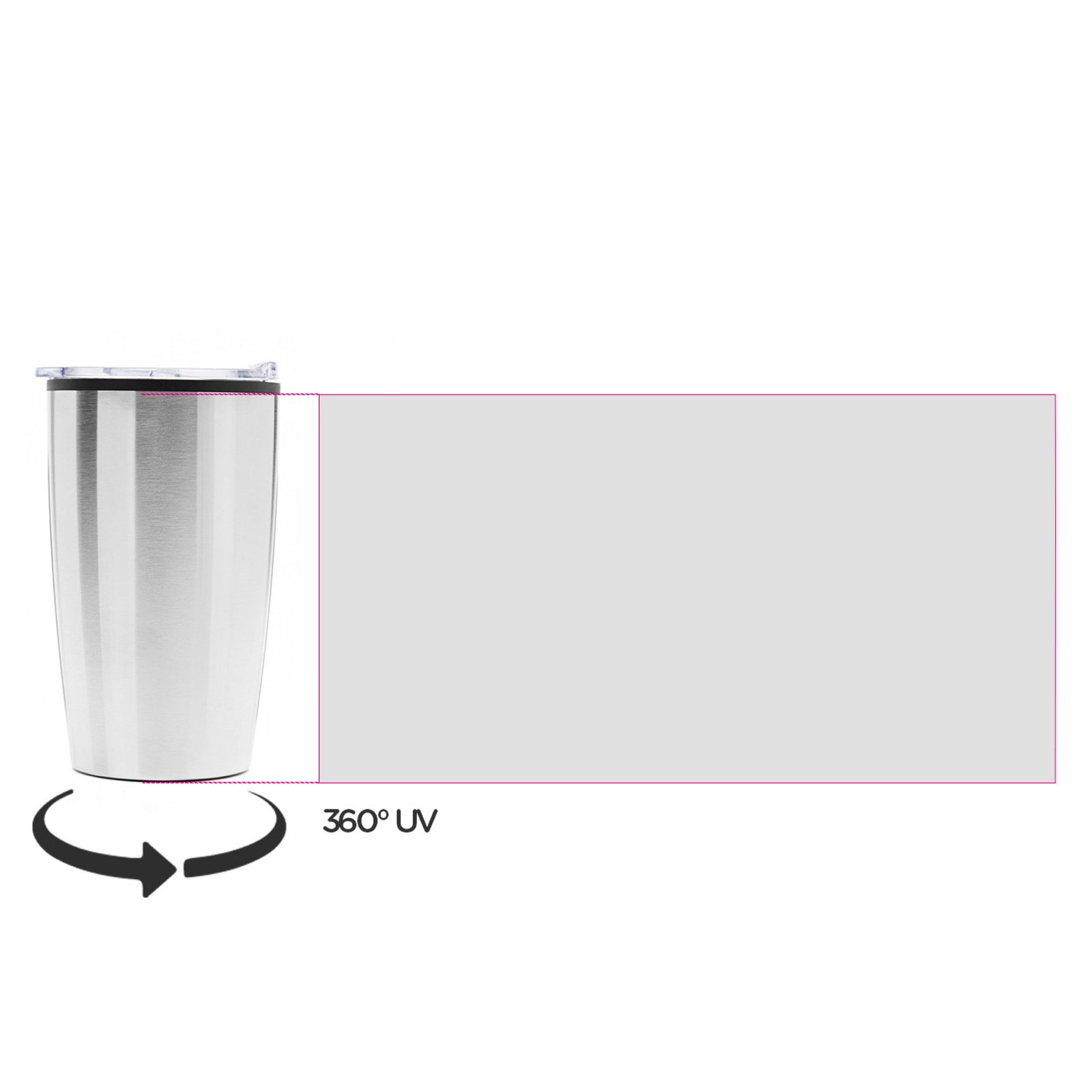 Mug térmico realizado en acero inoxidable en su exterior, y polipropileno de color negro en su interior, con tapa cristal clear y base antideslizante. Interior realizado en plástico. Medidas: 14.5 cm x Diámetro inferior 7,06 cm x Diámetro superior 9,2 cm. Capacidad: 400 ml.