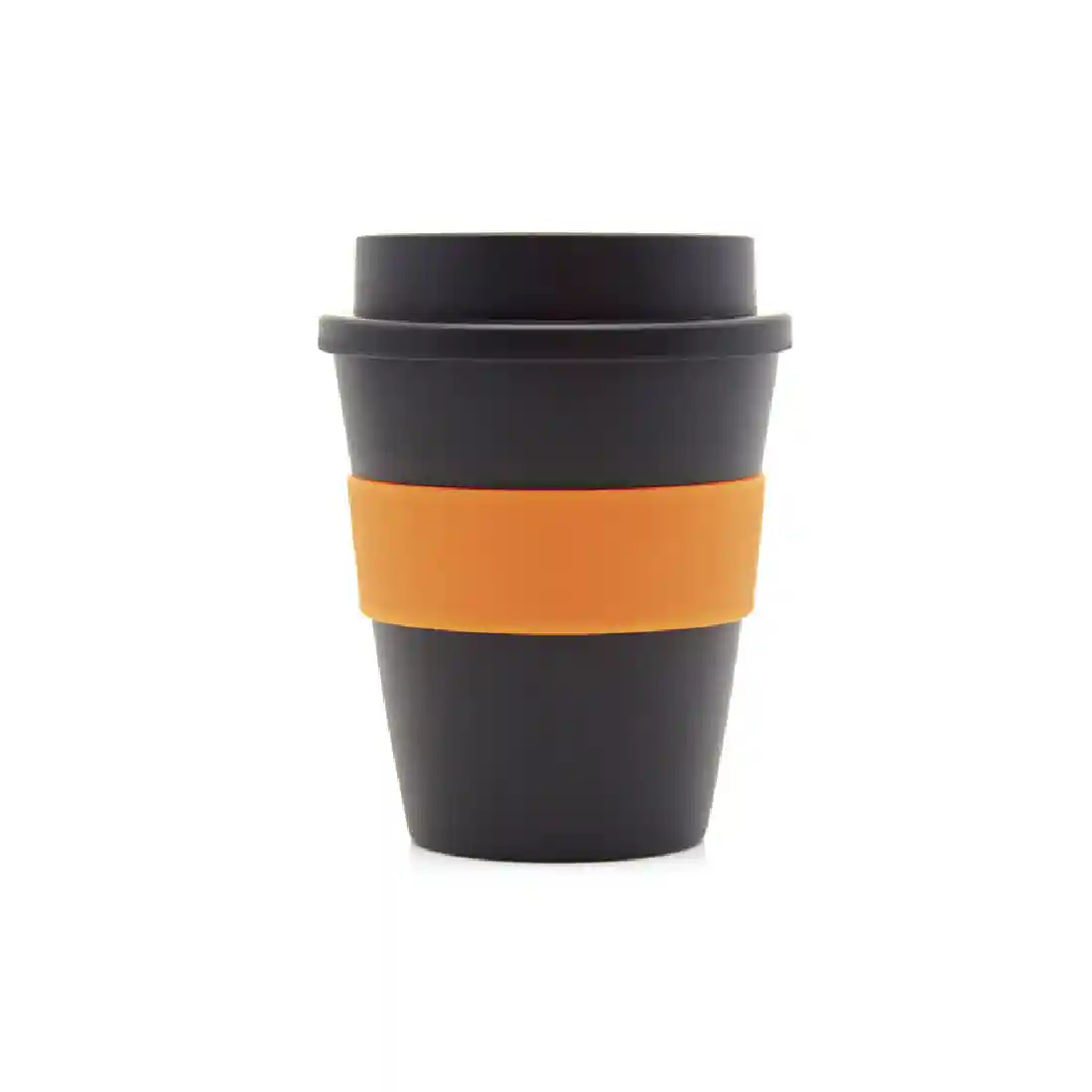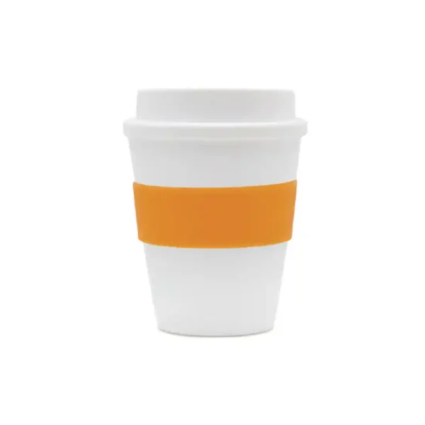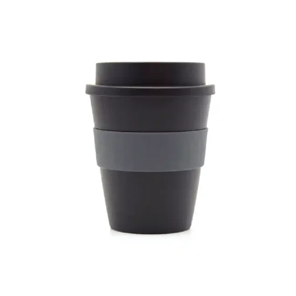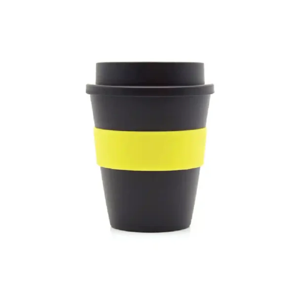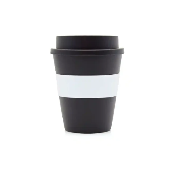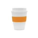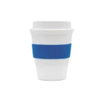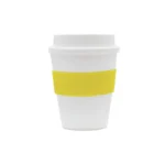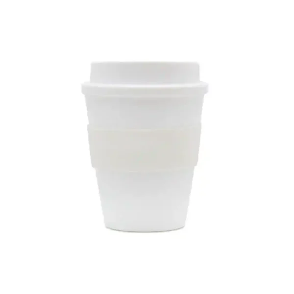 Vaso reutilizable fabricado en polipropileno con banda de silicona personalizable.