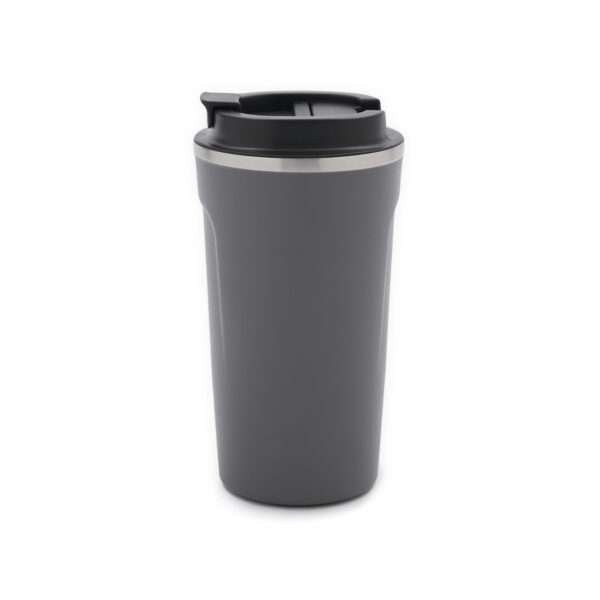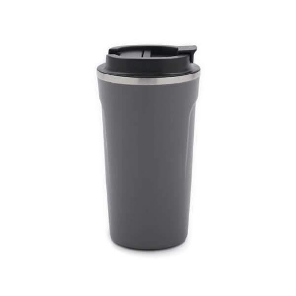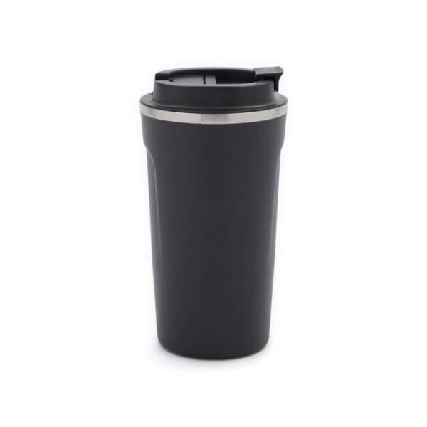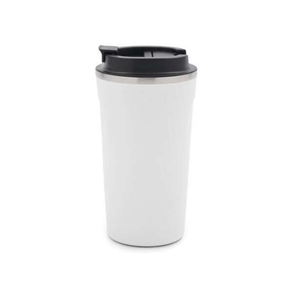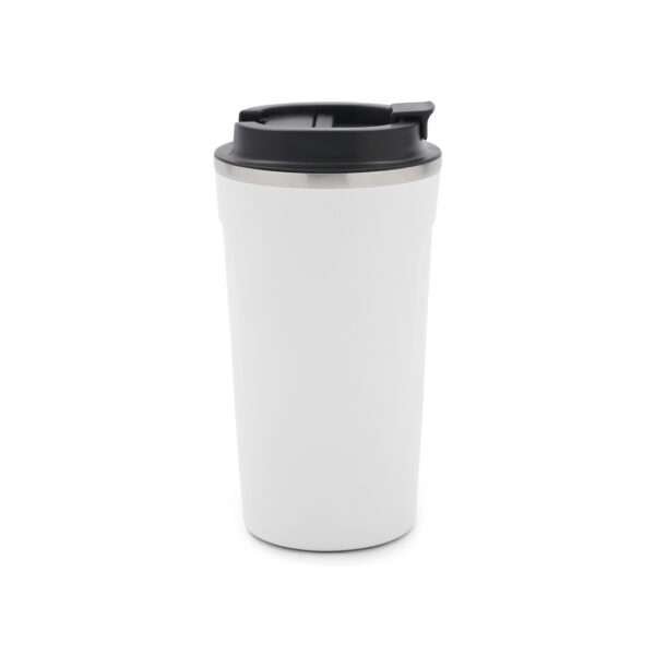 Mug construido en doble pared de acero inoxidable, esmaltado de color en su exterior y tapa de polipropileno antiderrame. Reutilizable. Dimensiones: 17 x 9 cm | 7 cm de base. Ideal para café, té, bebidas frías o calientes. Capacidad:500ml. Incluye Gift Box confeccionada en cartulina Kraft.