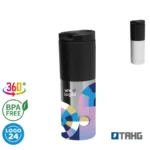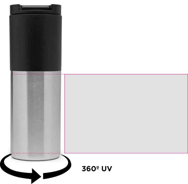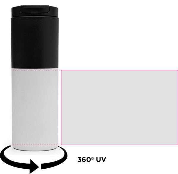 Mug térmico realizado con aluminio e interior de polipropileno negro. Boquilla regulable. Doble pared plástica.