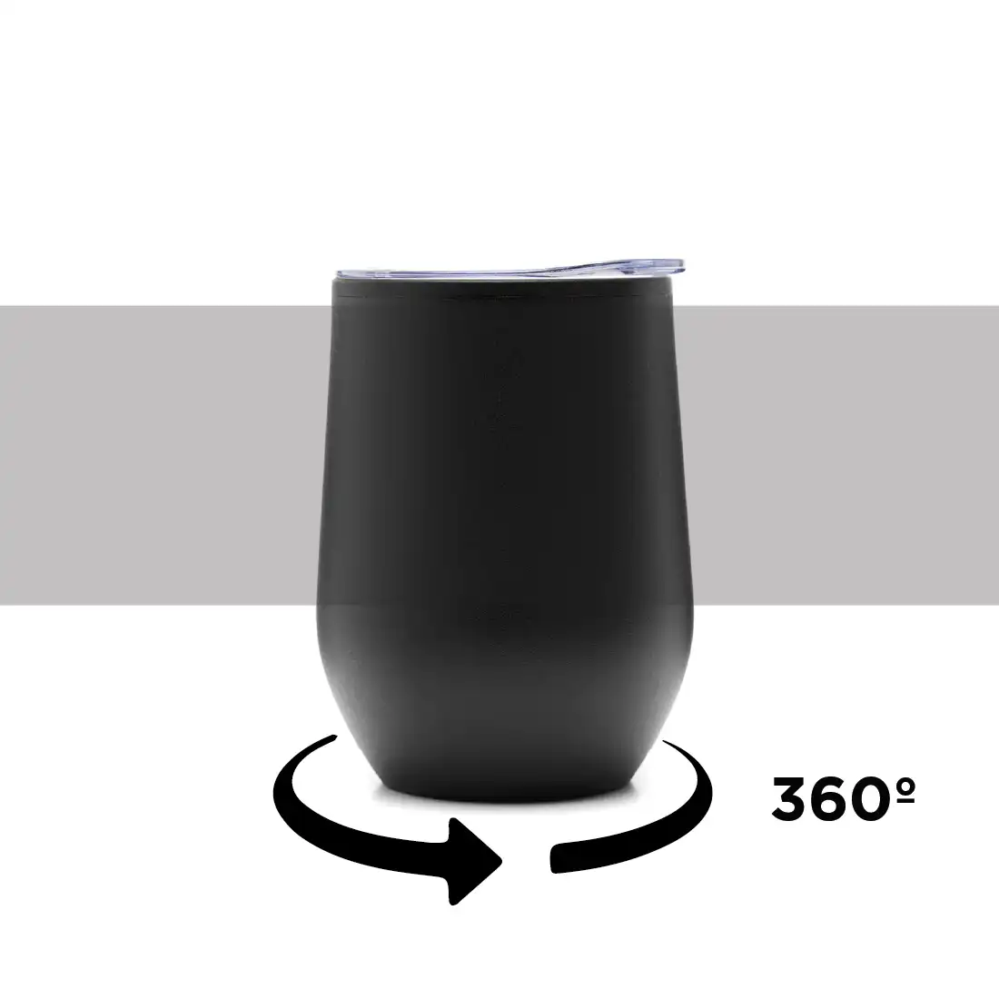 Mug térmico realizado en acero inoxidable esmaltado en su exterior, con interior de polipropileno negro y tapa cristal clear.
