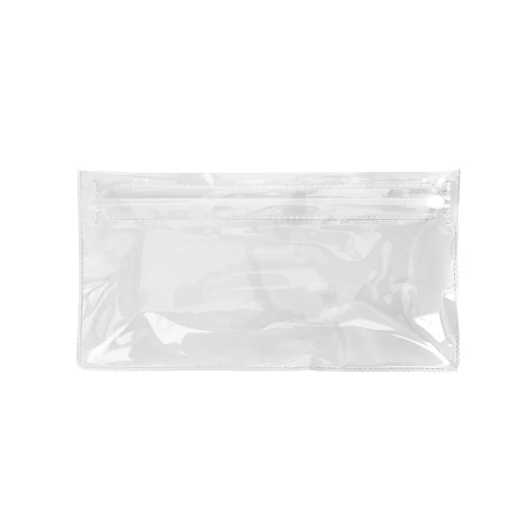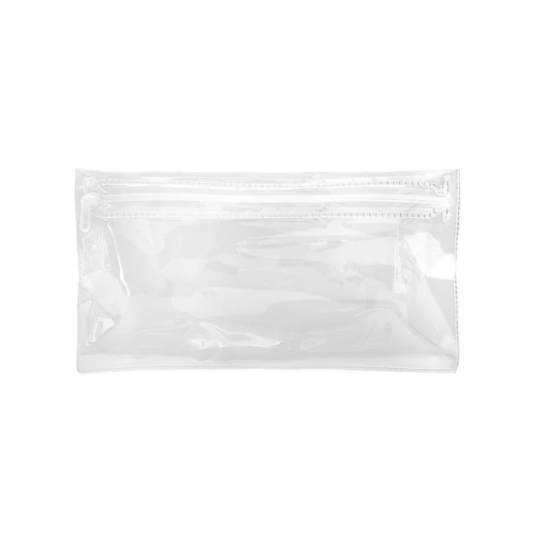 Neceser transparente con cierre, ideal para organizar y transportar fácilmente tus objetos personales.