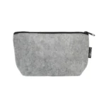 Neceser de fieltro RPET en color gris, confeccionada a partir de botellas recicladas. Dimensiones: 21 x 12 x 6,5 cm. Ideal para transportar los elementos de cuidado personal en viajes y bolsos de deporte. ReUseMe