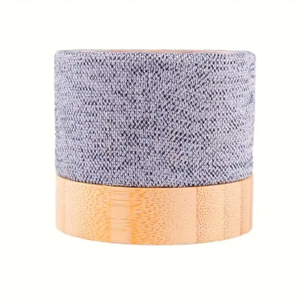 Parlante portátil fabricado en bambú y RPET. Tiene tecnología Bluetooth 5.0 y una batería de 300 mAh. Ofrece de 2 a 4 horas de reproducción con una carga de 2.5 horas. El parlante viene dentro de una caja de cartón junto a su manual de instrucciones y cable cargador. Dimensiones: 5,4 x 6,05 cm. Reuseme. Incluye Gift Box confeccionada en cartulina Kraft.