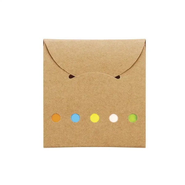 Set de notas adhesivas en formato compacto. Hecho de papel en color natural. Cuenta con notas adhesivas de colores presentadas en un estuche con tapa. Es ideal para marcar páginas, tomar notas rápidas o destacar información importante en estudios y trabajos.