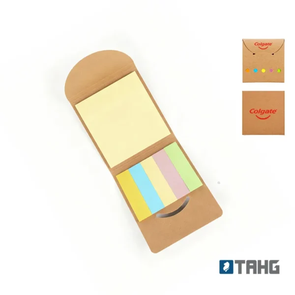 Set de notas adhesivas en formato compacto. Hecho de papel en color natural. Cuenta con notas adhesivas de colores presentadas en un estuche con tapa. Es ideal para marcar páginas, tomar notas rápidas o destacar información importante en estudios y trabajos.