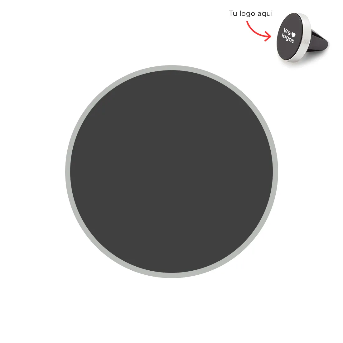 Soporte autoadhesivo e imantado para teléfonos celulares, que permite colocarlo en el auto. No es recomendable utilizarlo sobre fundas de silicona.