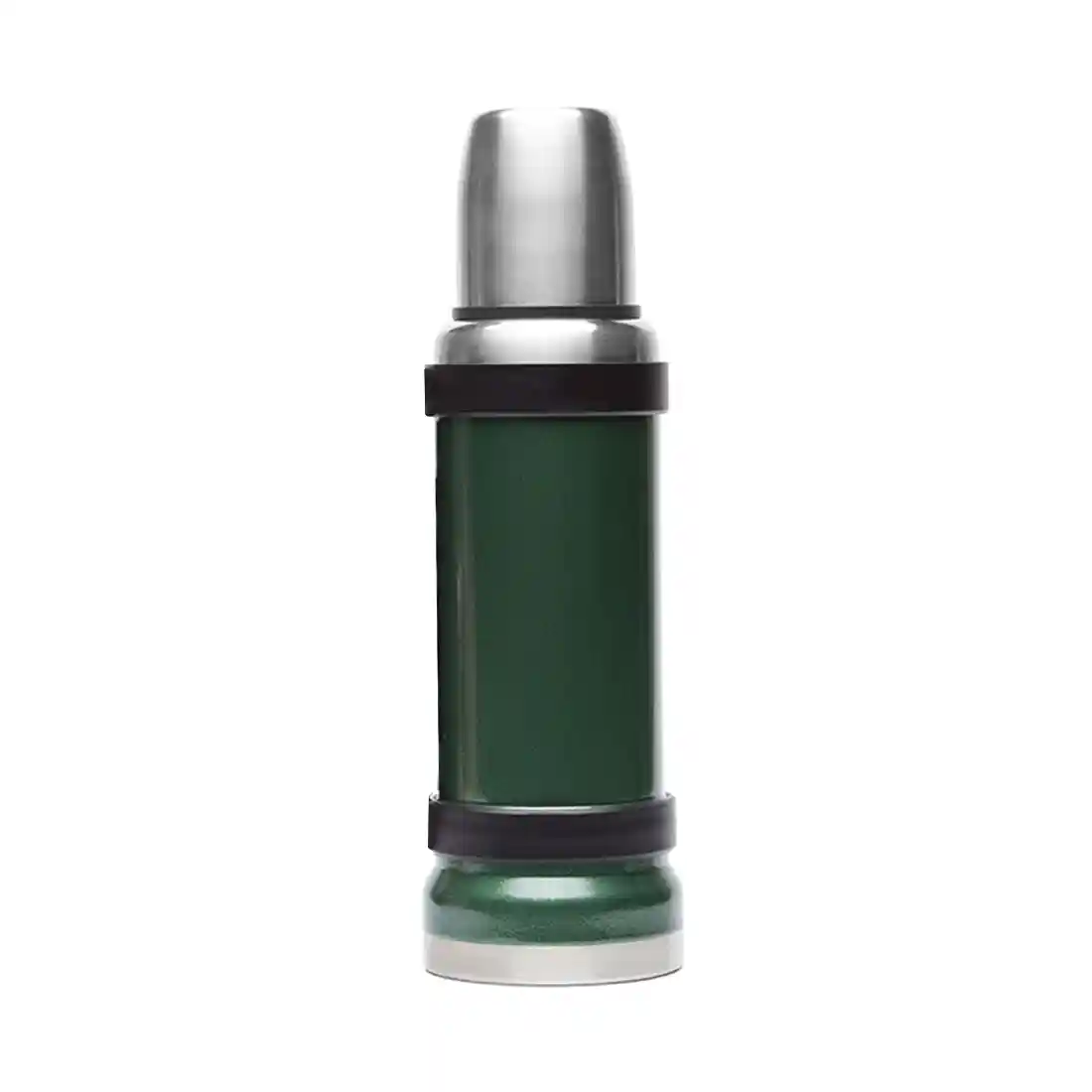 Termo de acero inoxidable 304, recubierto con esmalte especial que protege de ralladuras y golpes. Puede mantener el contenido a la misma temperatura durante 18hs, gracias a su doble pared aislante especial de acero. Cuenta con un tapón cebador Hermético a rosca con la función anti derrame y tapa con superficie plana estable para usar como taza o vaso y manija plegable para facilitar el transporte. Presentado en caja de cartón.