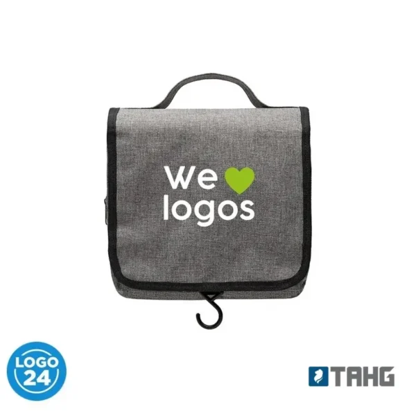 Necessaire de baño realizado en polycanvas. Gancho colgante para poder desplegar. Cierre con velcro. Medidas: Cerrado: 24 x 24 cm. Desplegado: 50 x 24 x 7 cm