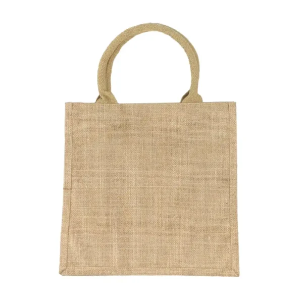 Tote bag fabricada en yute laminado. Cuenta con una correa confeccionada en algodón con cuerda; con 40 cm y una circunferencia de 4 cm. Ideal para quienes buscan una bolsa compacta y resistente para uso diario, perfecta para llevar artículos pequeños, compras o para un uso más informal. Medidas: 30 x 30 x 15 cm. ReUseMe.