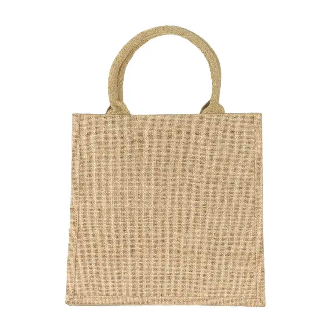 Tote bag fabricada en yute laminado. Cuenta con una correa confeccionada en algodón con cuerda; con 40 cm y una circunferencia de 4 cm. Ideal para quienes buscan una bolsa compacta y resistente para uso diario, perfecta para llevar artículos pequeños, compras o para un uso más informal. Medidas: 30 x 30 x 15 cm. ReUseMe.