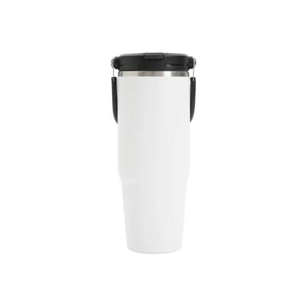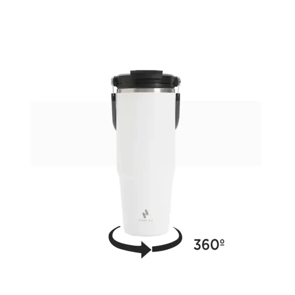 Tumbler térmico con sorbete incluido fabricado en acero inoxidable. Cuenta con tapa plástica con manija del mismo color del cuerpo, sorbete reutilizable, cepillo limpiador y doble pared aislante que conserva la temperatura por horas. Es ideal para mantener bebidas frías hasta por 8 horas o calientes hasta por 6 horas, perfecto para el gimnasio, oficina, auto o actividades al aire libre.